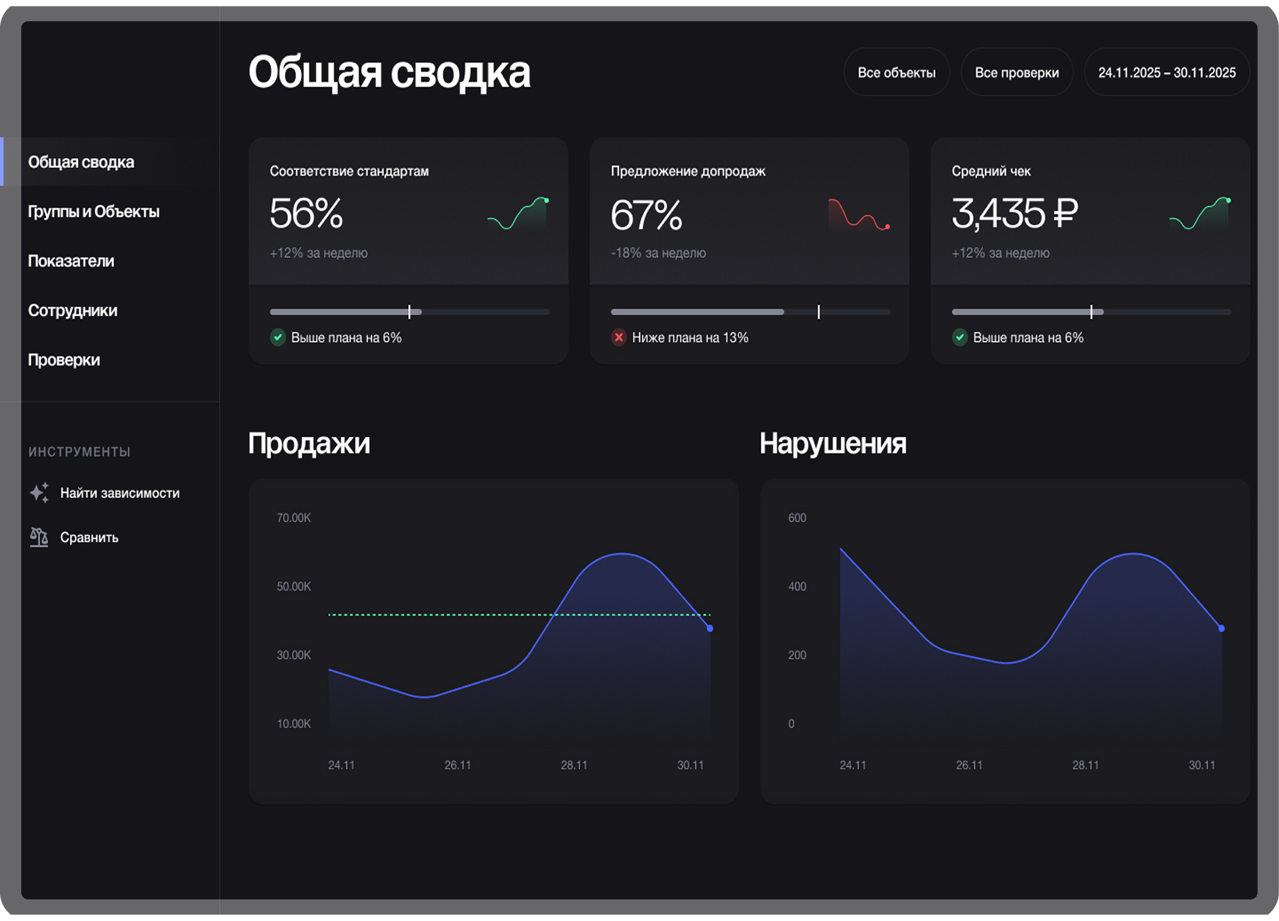 Под ключ возьмем на себя задачу по контролю процессов вашего бизнеса. Позволим сэкономить на аналитиках, тайных покупателях и дополнительном персонале для выявления проблем